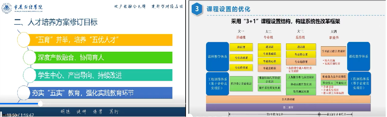 首先,专业负责人涂春梅、左智科分别汇报了软件工程、大数据管理与应用、区块链工程专业的人才培养方案修订工作。在本次修订工作前,经过对多所高校和优秀企业的调研,结合软件学院产教融合协同育人办学思路,在人才培养定位、课程设置、实践教学环节设计等方面作了科学规划和设计,力求打造最匹配社会需求、最符合我校办学定位与学生实际情况的应用系本科人才培养方案。