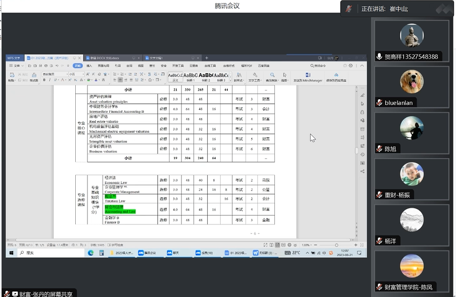 财务管理系主任陈凤、资产评估教研室主任张丹分别就2023级财务管理和资产评估专业人才培养方案的培养目标、毕业要求及实现矩阵、课程体系进行汇报,其中,陈凤主任对数智技术赋能课程建设情况进行特别说明,张丹主任则就资产评估人才培养与资产评估师证书考试匹配性做了重点介绍。