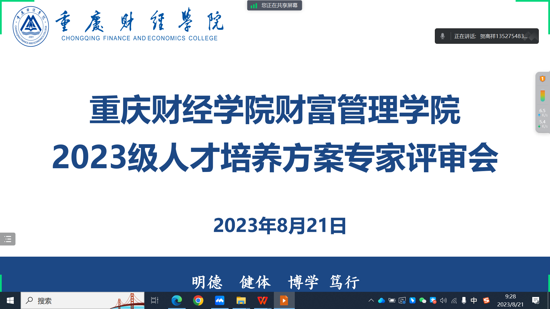 为进一步做好人才培养顶层设计,明晰各专业人才培养目标,凝练专业特色,推动我校“大会计”学科建设,提高人才培养质量。8月21日上午,我校财富管理学院邀请教育部会计信息化课程虚拟教研室负责人、重庆理工大学陈旭教授(二级),重庆市会计领军人才、重庆海平会计师事务所主任会计师王勇及我校教学委员会委员贺高祥教授对2023级财务管理、资产评估两个专业的人才培养方案进行评审,会议通过“腾讯会议”召开。澳门新葡京博彩校长助理崔中山、教务处处长黄兰、财富管理学院院长助理廉然、财务管理系主任陈凤、资产评估教研室主任张丹及其他教师代表出席会议,会议由贺高祥院长主持。