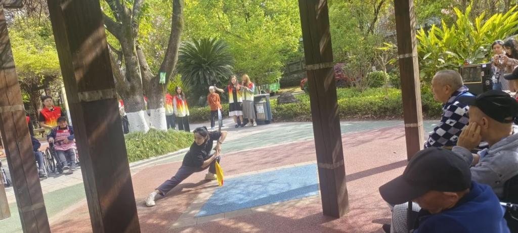 公共管理学院“青小志”助老志愿服务团队成员以武术、唱歌文艺、朗诵和舞蹈等形式进行文艺表演,通过合唱《荷塘月色》,朗诵《门前的老榆树》、《我爱你中国》,表演舞蹈《西楼别序》、《流水桃花》等活动丰富福利院老人们的生活,为老年人们带来青春的气息和青春的陪伴。