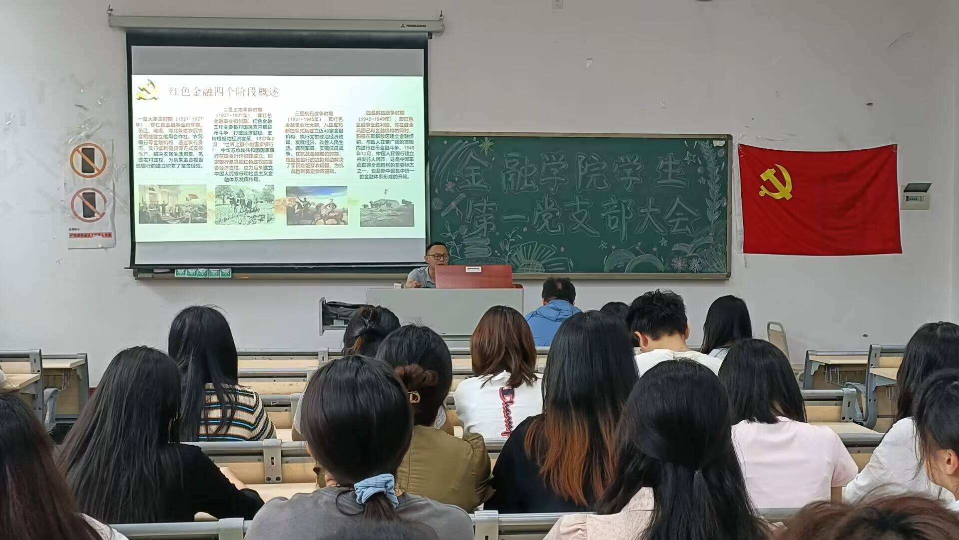 为深入学习贯彻习近平总书记重要讲话重要指示精神,弘扬红色金融精神,建设服务型党支部。5月20日,我校金融学院学生第一党支部在教学楼1406教室顺利开展了以“红色金融路漫漫,为国为民守初心”为主题的红色金融讲座。本次讲座由金融学院教师党支部书记纪同辉同志主讲、金融学院学生第一党支部书记于成江同志和支部全体学生党员参加此次讲座。