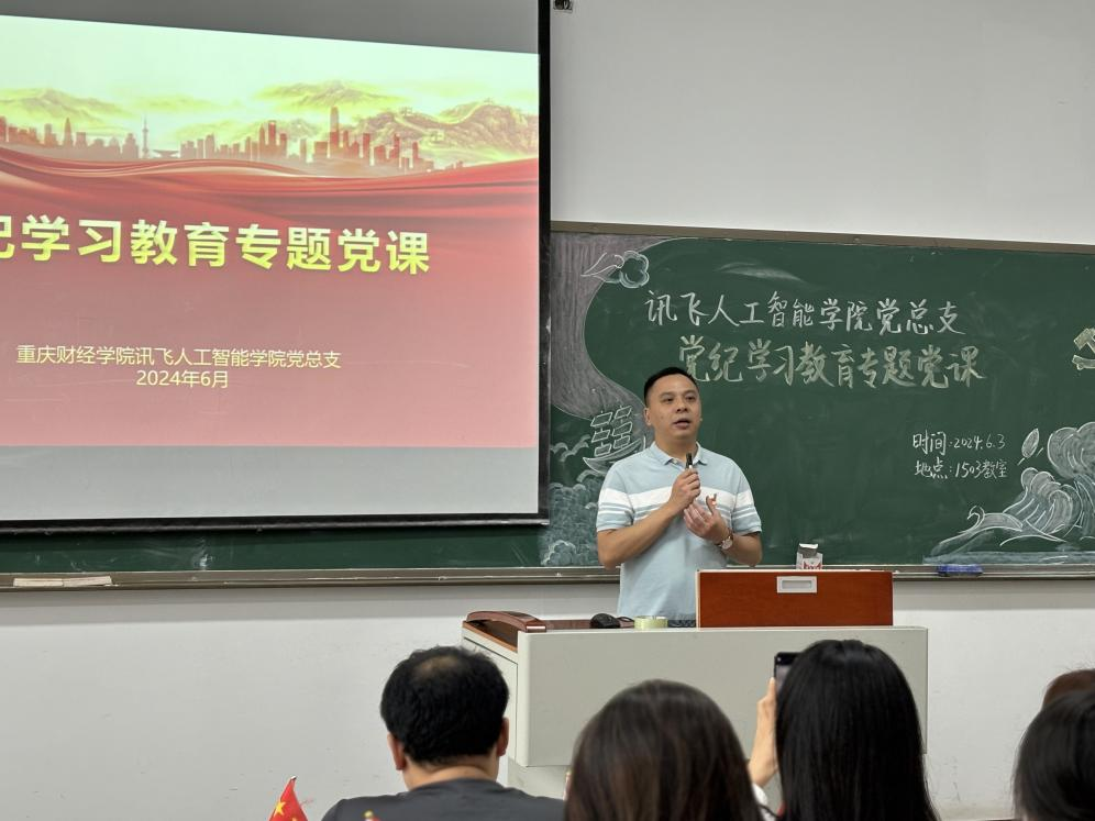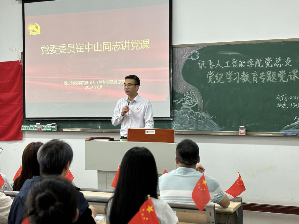 为深入学习贯彻习近平总书记关于党纪学习教育的重要讲话和重要指示精神,深刻认识党纪学习教育的重大政治意义和重要现实意义。6月3日,我校讯飞人工智能学院党总支组织开展党纪学习教育专题学习,校党委委员、副校长崔中山讲授专题党课。学院全体教师党员、学生党员参加学习,会议由学院党总支书记乐晓勇主持。