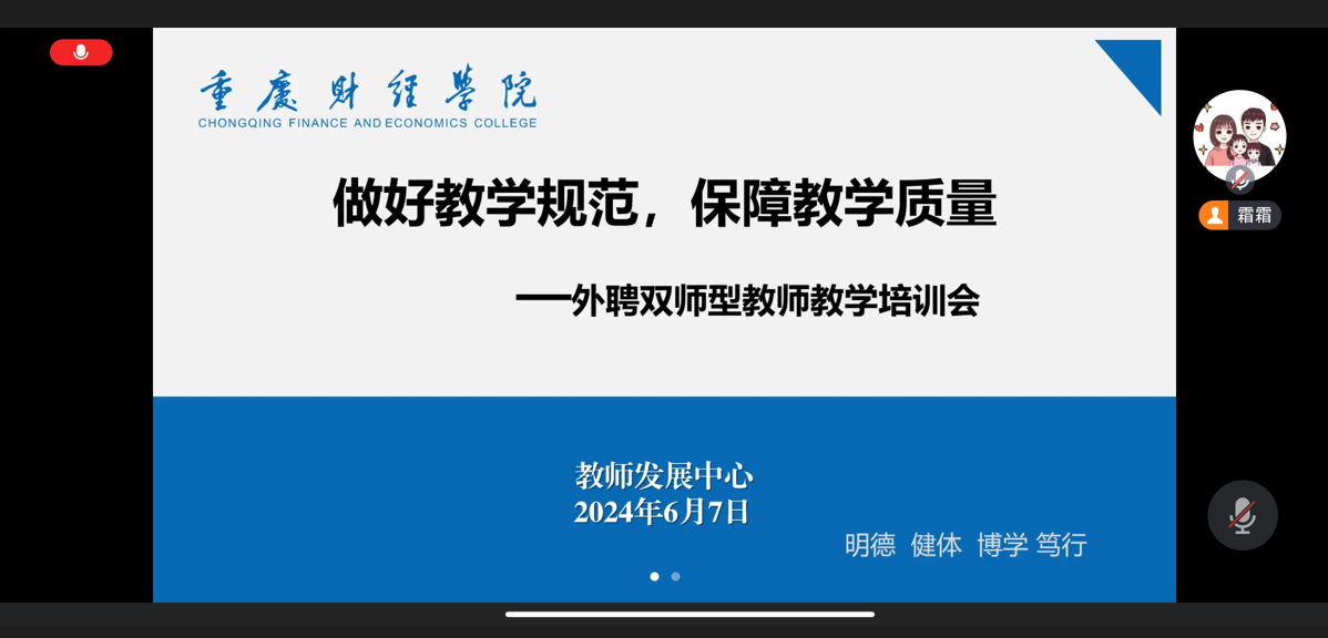 为进一步加强外聘双师型教师队伍建设,提高外聘双师型教师的教育教学水平和教学规范,6月7日,我校教师发展中心开展外聘双师型教师教学规范培训,本次培训通过腾讯线上会议进行,本学期在我校授课的17名外聘双师型教师参与。此次培训由教务处李梨副处长主持。