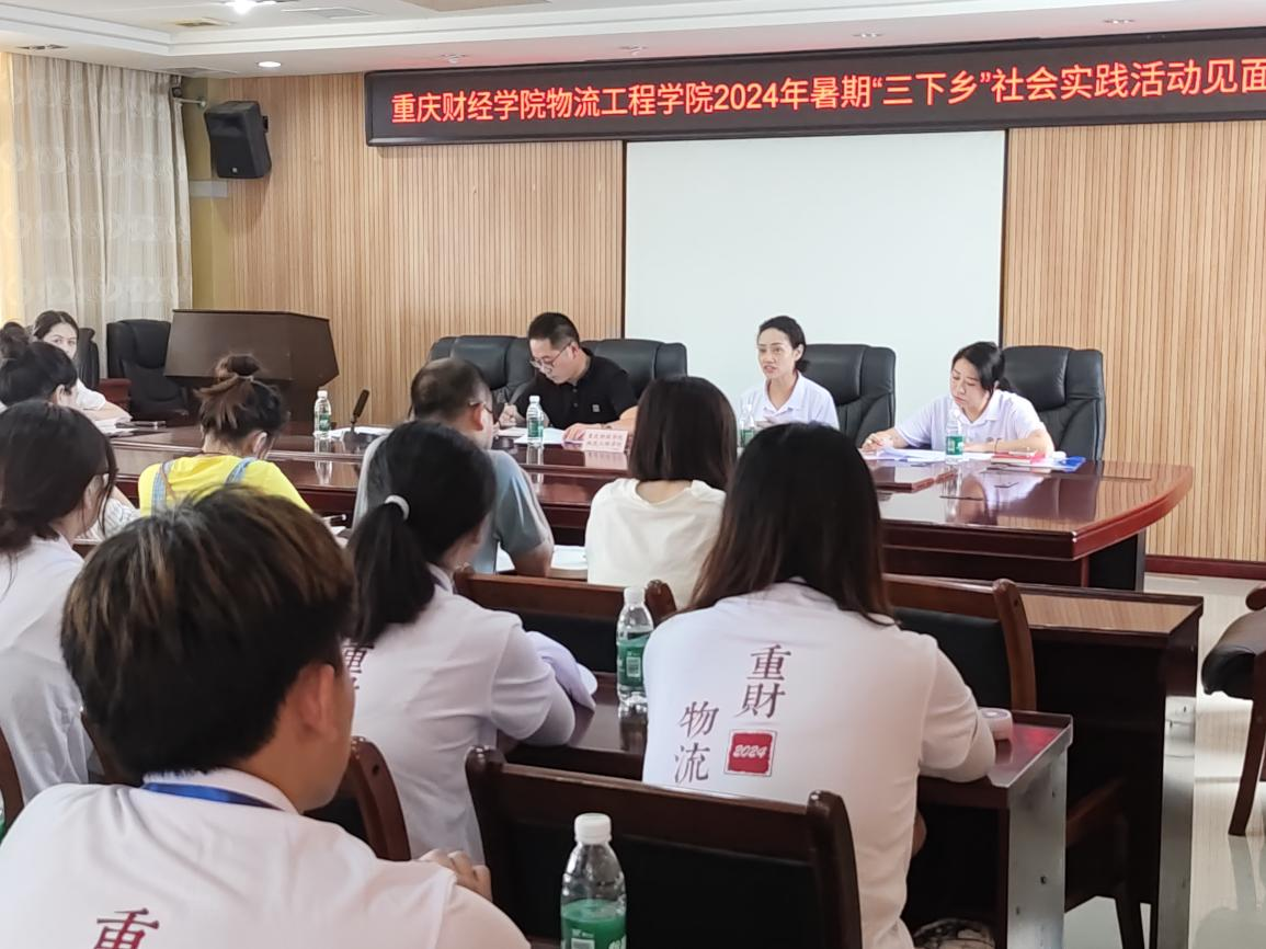 为深学笃行习近平新时代中国特色社会主义思想,深入学习宣传贯彻党的二十大精神,进一步落实我校“一院一镇街”校地合作的工作部署,引领广大青年厚植爱农情怀、练就兴农本领。7月2日,我校物流工程学院“三下乡”“青车熟路”社会实践志愿服务团队前往巴南区南彭街道开展大学生暑期“三下乡”社会实践活动并举行见面会。南彭街道副书记杨鹏,街道团工委、经济发展办公室、民政办公室、城镇管理服务中心工作人员等及学院党总支副书记王艺燃、团总支书记杨惠琳、学生党支部书记郑思迪和“三下乡”实践团全体同学参加。