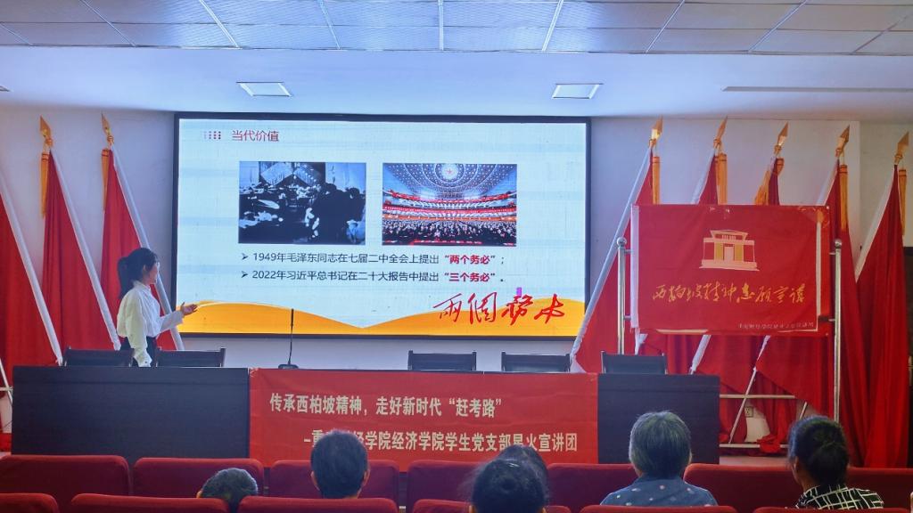 为深入学习贯彻习近平新时代中国特色社会主义思想,响应团中央志愿服务实践活动的号召,进一步弘扬西柏坡精神。7月5日,我校经济学院“经彩乡约”社会实践团前往巴南区惠民街道胜天村开展“西柏坡精神”宣讲活动。20余名村民党员代表参与宣讲交流,星火志愿宣讲团张姿君担任主讲人。