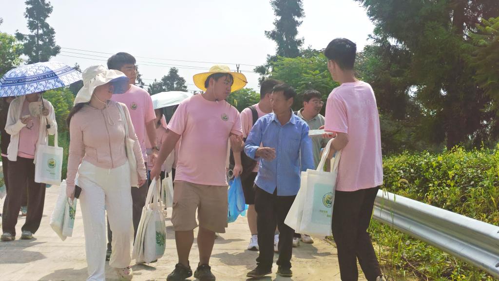 虽未逢香茶盛开时节,但来自大自然的亲切时刻感染着志愿者们。据了解,胜天茶园是以农业为基础、文化为灵魂、旅游为平台,结合东永场镇“强镇带村”工程及打造市级重点现代农业产业园,融合惠民、二圣优良的乡村生态资源。听着管护员老杨对胜天茶园侃侃而谈的同时,志愿者们还不忘拾起周边的垃圾,这一行为虽小,却彰显了对美丽乡村建设的责任与担当。这不仅是对自己参与社会实践的一种积极回应,更是对“绿水青山就是金山银山”这一发展理念的具体实践。