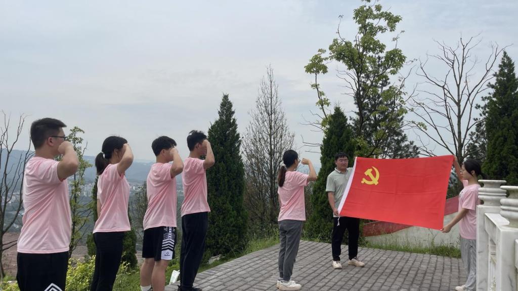 尤为引人注目的是,预备党员刘灿同志带领全体成员在纪念碑前重温入党誓词。全体成员高举右手,目光如炬,字字铿锵有力。这一刻,时间仿佛凝固,誓言在空中回荡,不仅是对历史的回响,更是新时代青年对国家和民族未来的庄严承诺;不仅是对先烈的致敬,更是对自己青春梦想的宣誓,誓将红色基因代代相传,为中华民族的伟大复兴贡献青春力量。