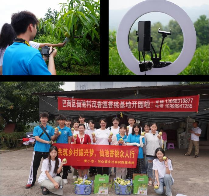 7月9日,我校公共管理学院“青小志·同心振乡”社会实践服务团来到巴南区鱼洞街道仙池村,通过“线上+线下”相结合的形式,为当地特色农产品—仙池香桃打开更广阔市场,助力乡村产业振兴、拓宽营销渠道,为乡村振兴注入新的活力。