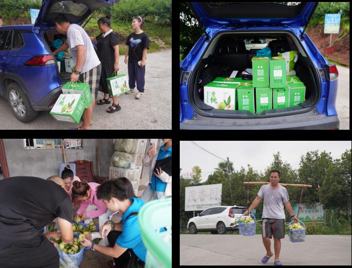 创新销售形式,拓宽销售渠道,鱼洞街道主导的《鱼洞的小鱼儿》视频号发布了《夏天的桃子树下,总有个“桃”喜的童年》赢得网友点赞、转发、推荐、评论共计1200余次。同时,重庆理工大学和重庆青年职业技术学院为仙池香桃的宣传提供了法律知识的支持,重财公管团学抖音账号直播人气值达1000。校校、校地协同共筑乡村振兴梦,多方联合为仙池香桃打开销路。当天,吸引20余名顾客通过自己采摘、上门挑选、朋友代选、线上购买邮寄等方式进行了购买,仙池香桃品牌效应开始显现。