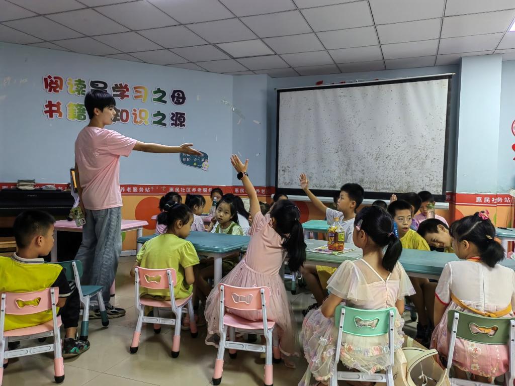 志愿者通过宣讲与游戏互动,向青少年普及防拐骗的知识,并对常见几种拐骗方式进行讲解,同时也教大家面对危险该如何自保、应对和求救,提高了小朋友们的自我防备意识、自我保护意识。