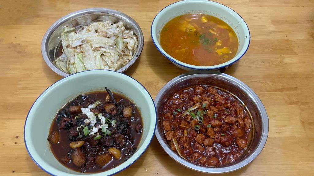 厨房里,阵阵切剁声、翻炒声中,食材被巧手厨师们变换成一道道令人垂涎的美味,有东坡肉、樱桃肉、小炒肉、盐煎肉、清炒莲白、番茄鸡蛋汤等,每一道菜肴都饱含着对老党员的敬仰之情,空气中弥漫着家的味道。在品尝佳肴时,担任支委会、监委会成员,近七旬还在社区治理上贡献力量的丁泽志同志连连称赞:“娃儿们手艺真不错,谢谢你们来看我,谢谢你们的用心。”