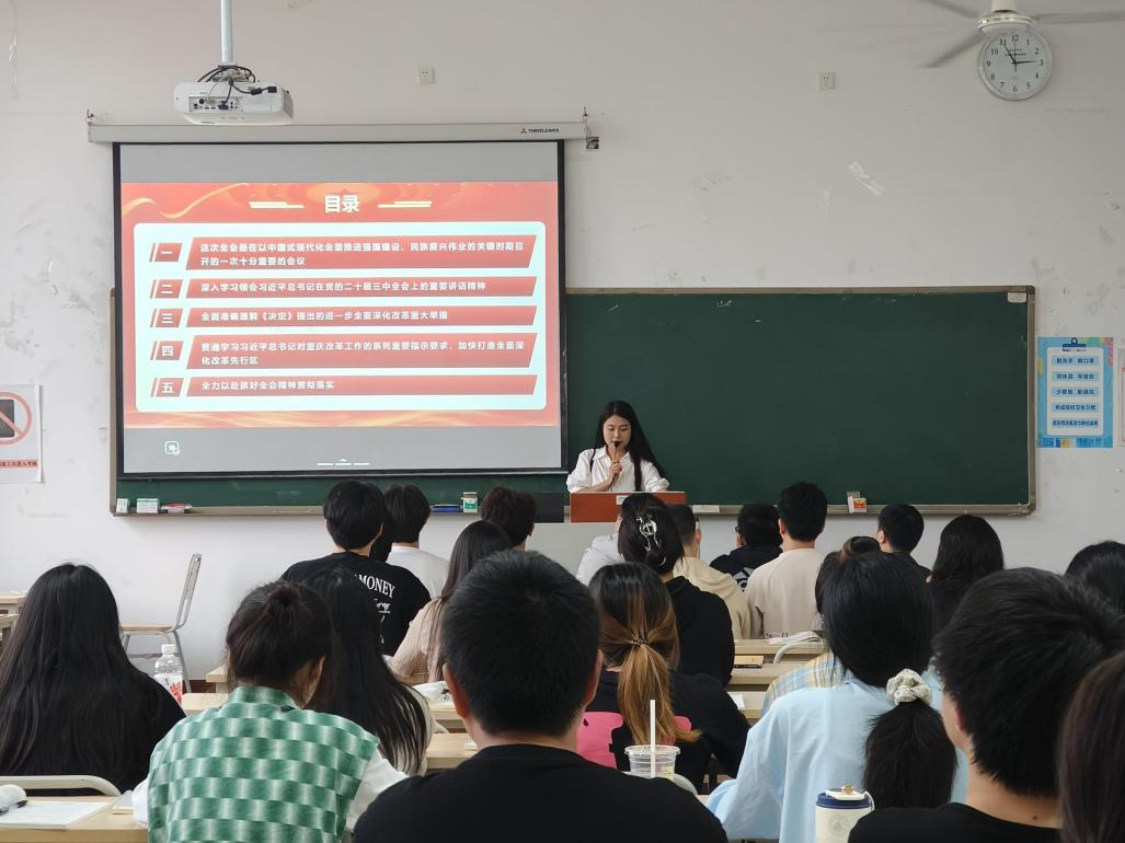 宣讲活动中,老师们以饱满的热情和扎实的专业知识,深入浅出地解读了党的二十届三中全会的精神内涵和重要意义。他们结合当前国内外形势,分析了我国经济社会发展面临的新机遇和新挑战,强调了全面深化改革对于推动经济社会高质量发展的关键作用。宣讲过程中,老师们还与同学们进行了互动交流,回答了同学们关心的问题,进一步增强了宣讲的针对性和实效性。宣讲队成员罗欣玥老师表示:“此次宣讲活动不仅是一次深刻的思想洗礼,更是一次生动的实践教学。通过宣讲,我们让学生更加深入了解党的二十届三中全会精神,激发他们为实现中华民族伟大复兴的中国梦贡献力量的热情和信心。”