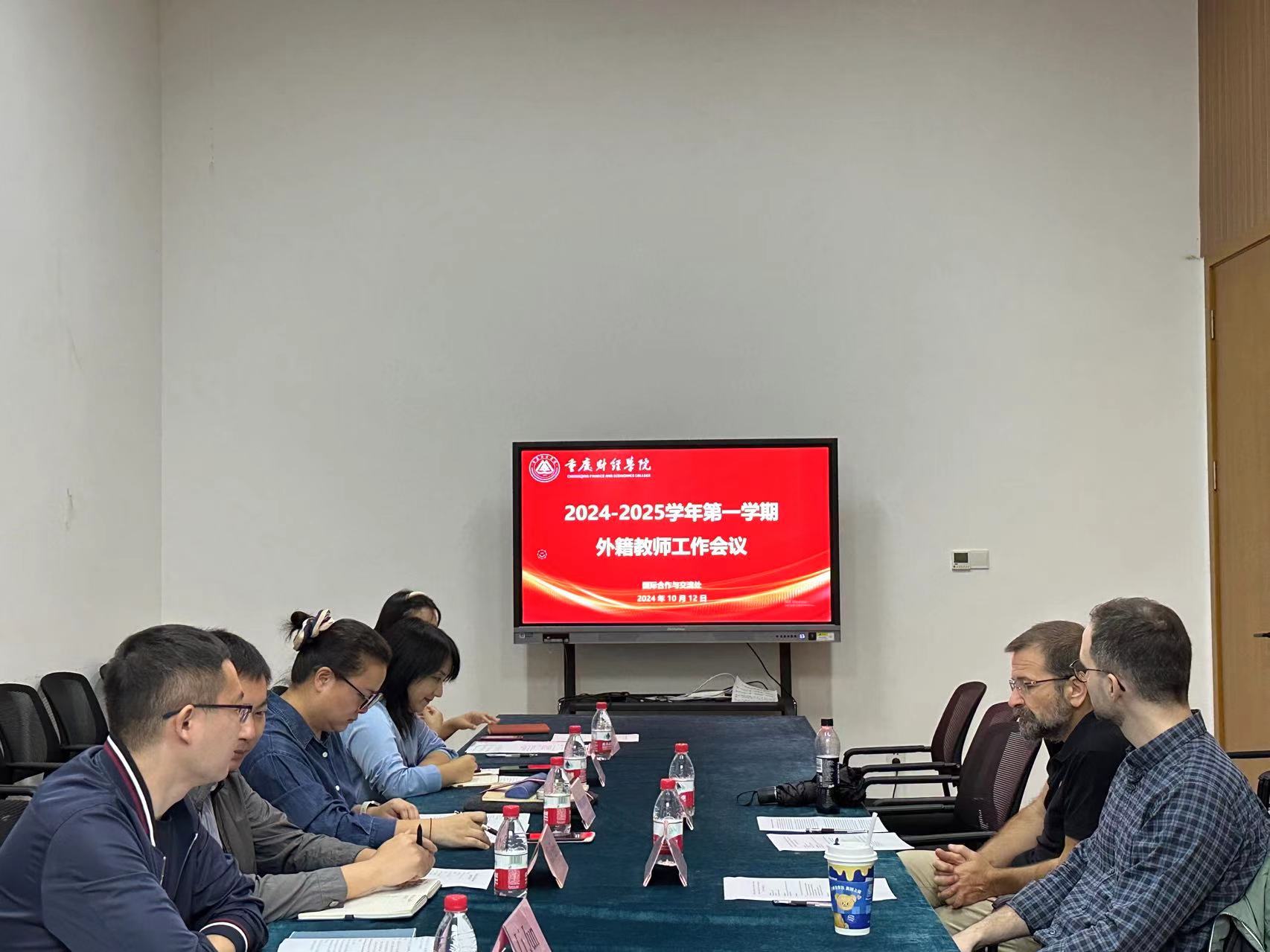 10月12日上午,我校在图书馆大研讨室召开“2024-2025学年第一学期外籍教师工作会议”。国际合作与交流处处长王晓颖、组织人事部部长谢付杰、国际商学院院长黄兰、教务处副处长李军及全体在校外籍教师参加了会议。会议由国际合作与交流处李慧主持。 会上,王晓颖向与会的外籍教师表示欢迎,并介绍了学校的发展历史、专业设置和中外合作办学项目等情况,帮助外籍教师更加全面地认识与了解我校。李军着重介绍了我校教学工作相关管理规定,黄兰解读了《中外合作办学项目外籍教师教学工作管理条例》,帮助外籍教师更好地了解国家和学校的相关规章制度以及与外籍教师相关的管理工作。会议最后,王晓颖总结到,外籍教师作为学校师资队伍的重要组成部分,是推动学校国际化发展的重要力量,希望各位外籍教师能充分发挥其专业特长,与学校携手同行,共同培养具有国际沟通与交流能力的应用型人才。 外籍教师工作会议是我校外籍教师管理工作的年度工作例会之一,旨在帮助我校外籍教师了解重庆、了解学校,融入新环境,加强外籍教师的教学规范管理工作。未来,学校将继续提升外籍教师管理和服务工作水平,吸引更多优秀的外籍人才来校工作,推动学校教育事业的国际化发展。