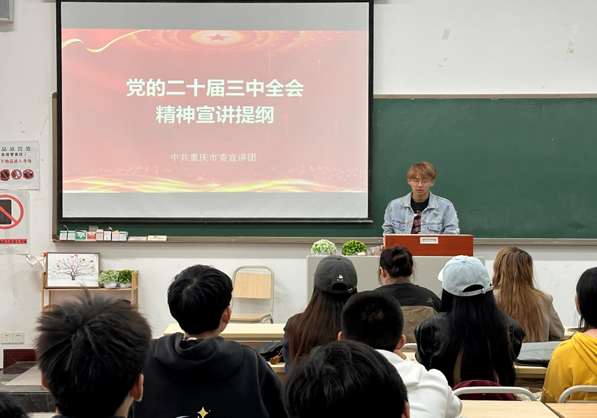 为深入学习贯彻党的二十届三中全会精神,凝聚共识,扎实推进学习宣传贯彻工作走深走实,推动学校教育事业高质量发展,我校国际商学院组织各班级开展主题宣讲。此次宣讲会旨在启发广大青年深刻认识和理解全会精神价值,为青年的成长成才提供正确思想引领。