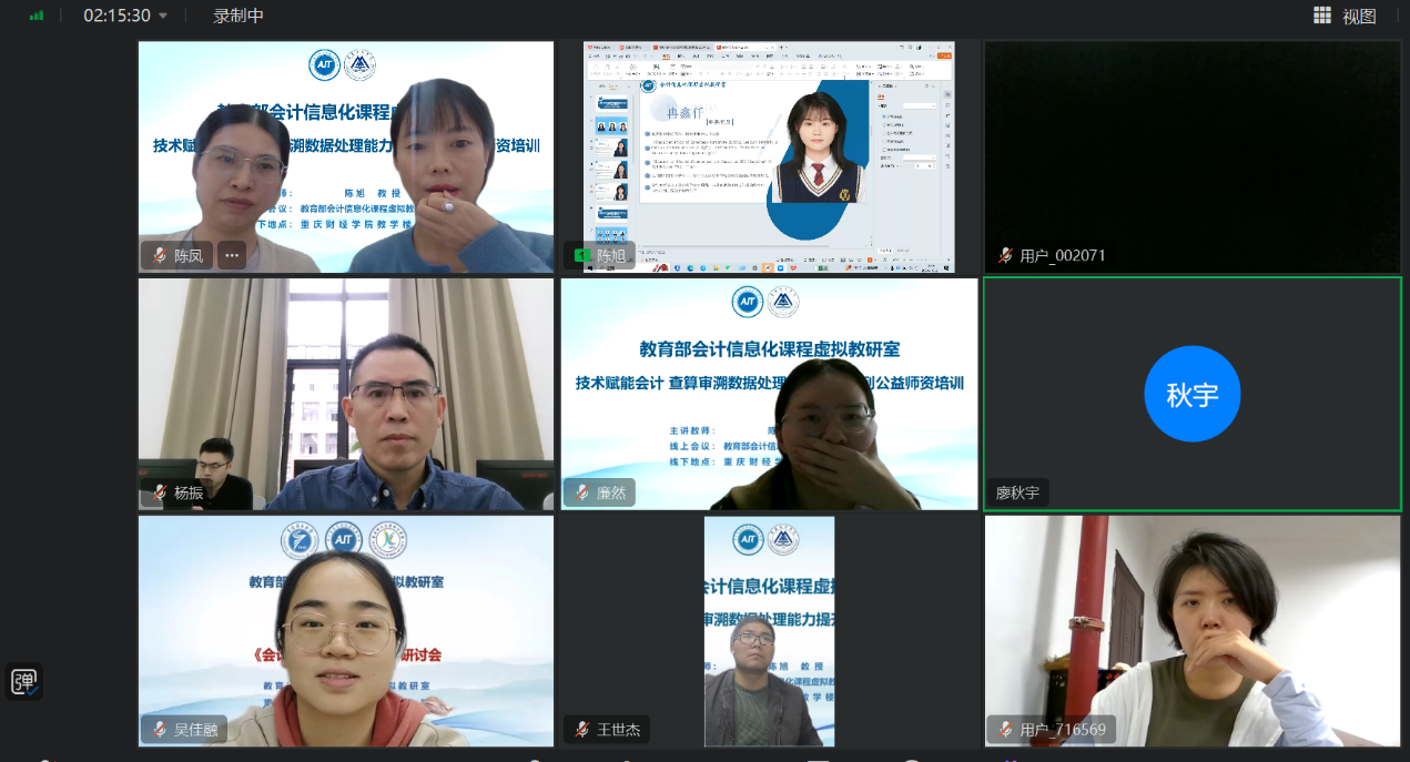 会计学院(财务管理学院)院长李倩及教学团队全体成员,重庆工商大学、重庆理工大学、重庆交通大学、重庆工业职业技术大学、重庆财经职业学院、重庆建筑工程职业学院等高校教师参与培训。由虚拟教研室部分教师和陈旭教授研究生组成的助教团队全程参加培训,为参训教师提供答疑服务。