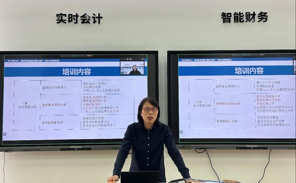 10月21日下午,教育部会计信息化课程虚拟教研室组织开展的“技术赋能会计·查算审溯数据处理能力提升”系列公益师资培训活动第二场在我校教学楼1206教室顺利举行。