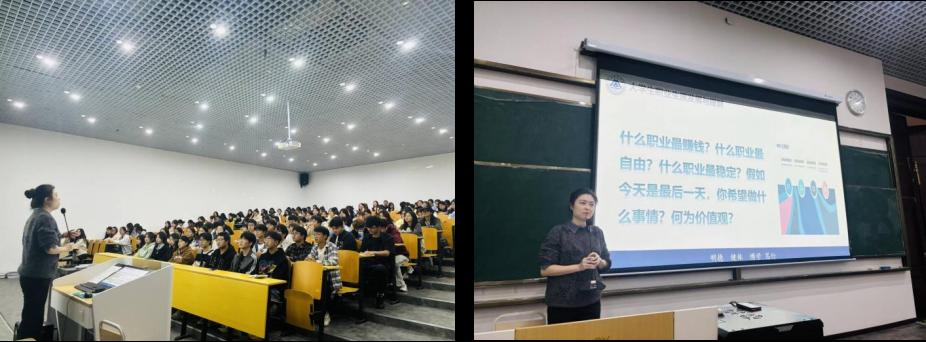 讲座现场人头攒动、座无虚席,大一新生们怀着对未来的憧憬又夹杂着些许迷茫齐聚于此。罗婷婷书记凭借丰富的经验与深刻的见解,引领同学们展开自我认知与职业探索。大学生作为新时代的中流砥柱,肩负着重大的历史使命。她指出,大一新生从踏入大学校门的那一刻起,便要树立正确的职业观和价值观,积极响应国家号召,将个人职业发展与国家需求紧密相连。与此同时,她还鼓舞同学们踊跃参加社会实践、创新创业活动,以此提升自身的综合素质与职业竞争力。