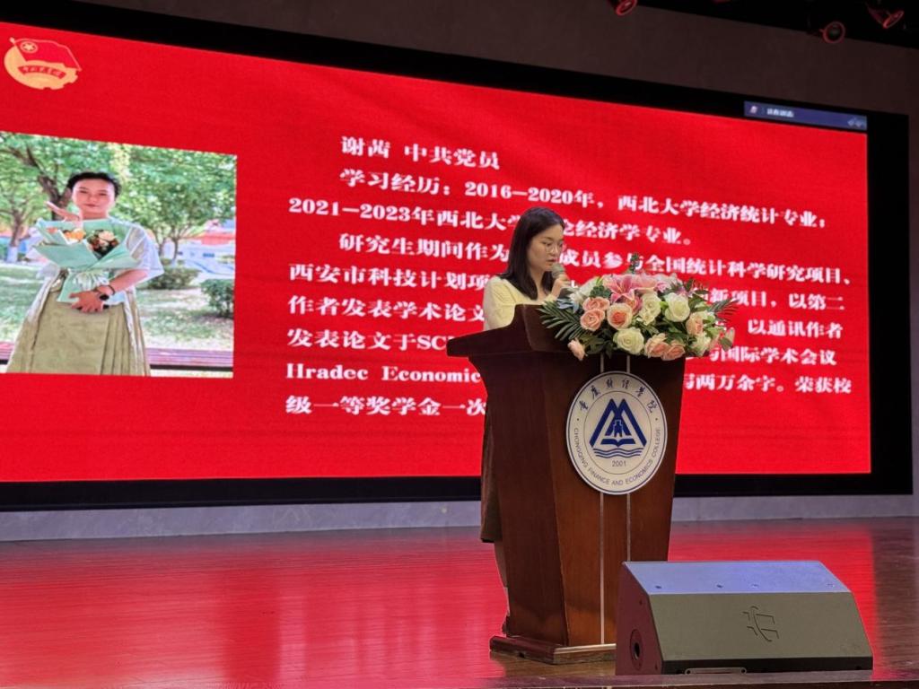 新进教师代表谢茜老师以“潜心向学重财人 携手人生新征程”为题作了发言。她表示,将以学校校训为指引,鼓励学生成为有能力、有责任、有担当的栋梁之材,并为学生提供了未来的学习建议。