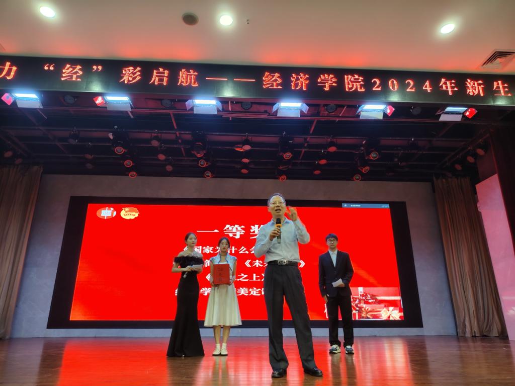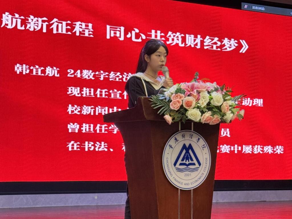 新生代表韩宜航以“扬帆起航新征程 同心共筑财经梦”为主题作了热情洋溢的发言,表达了对未来的憧憬和对知识的渴望,展现出新生们朝气蓬勃的精神风貌和积极向上的学习态度,也为经济学院发展增添了新的动力。