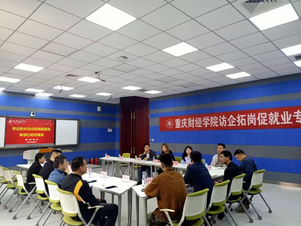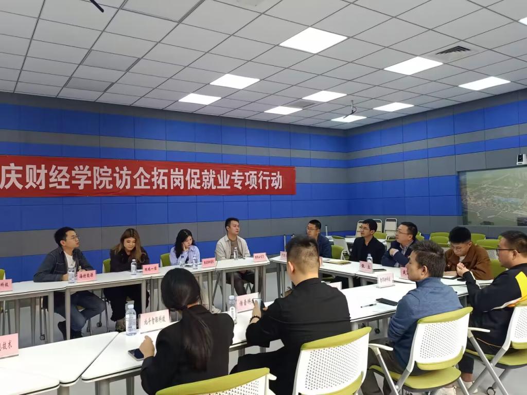 为积极响应教育部发起的“全国高校书记校长访企拓岗促就业专项行动”,进一步推动校企合作深度发展,促进产教融合,有效拓宽就业途径,10月25日,我校软件学院借学校双选会之机,特邀重庆海特能源股份有限公司、重庆环球一佳信息科技有限公司、重庆智界新科技有限公司、维沃移动通信(重庆)有限公司及重庆粤嵌科技有限公司等8家知名企业的高层管理人员座谈交流,拓展就业渠道。我校副校长张立、软件学院副院长夏祥礼、青年骨干教师戴思聪、就业专员何建旭参加交流会,会议由夏祥礼主持。