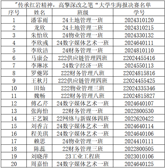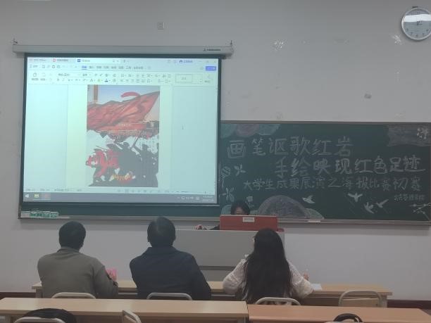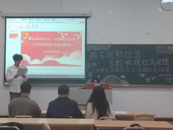 为深入弘扬与传承红岩精神,学习贯彻党的二十届三中全会精神,展现新中国成立75周年以来我国的发展成就,由我校马克思主义学院主办、公共管理学院承办的第十二届“大思政课”铸魂育人活动之“画笔讴歌青春红岩,手绘映现红色足迹”大学生成果展演海报比赛初赛,于11月8日中午在教学楼1402、1418教室顺利举行。陈开江老师、黄涛老师、高雪莲老师、易春虎老师、苏成容老师以及阳圆老师应邀担任评委。