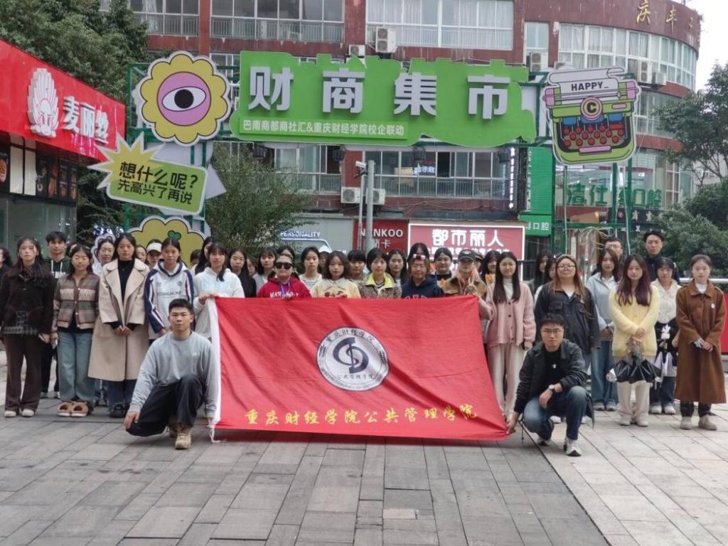 为进一步推动我校“党建引领·一院一镇街”校地合作项目建设,打造“财商集市”大学生实践活动品牌,助力青年成长发展,为我校学生提供更多直面生活、相互交流、锻炼能力的机会。11月9日-10日,公共管理学院与巴南商社汇在重庆市巴南区鱼洞街道商社汇外广场联合举办第四届“财商集市”创业实践活动。