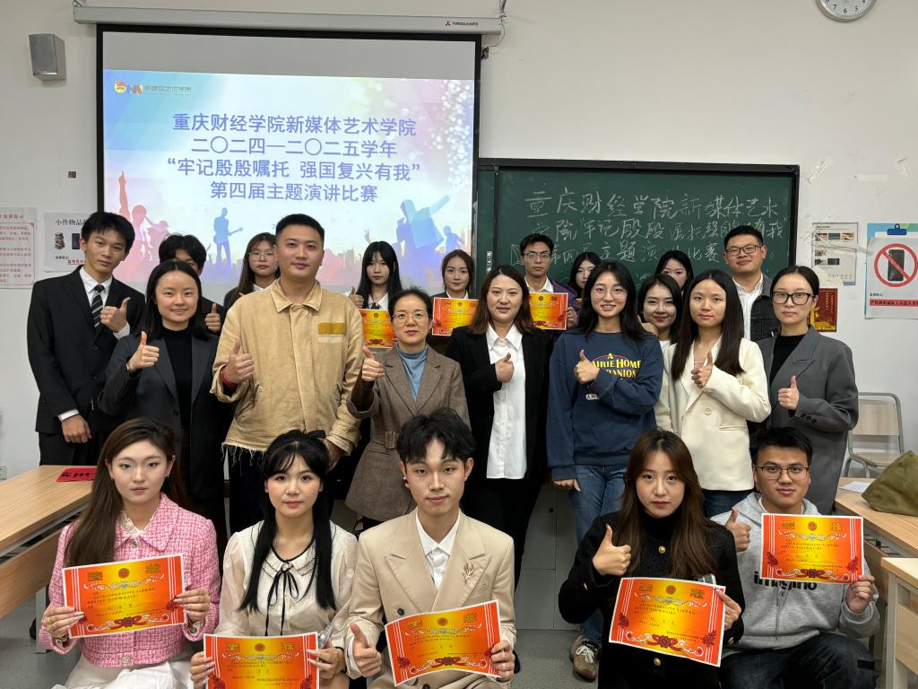 为学习贯彻党的二十届三中全会精神,深入解读全会精神,切实将会议精神转化为推动学校发展的实际行动。11月8日中午,我校新媒体艺术学院以“牢记殷殷嘱托 强国复兴有我”为主题开展了第四届主题演讲比赛,学院党总支书记甘雪梅、团总支书记朱明明老师及各专职辅导员参加,播音主持与艺术专业教师王嘉森等担任评委。