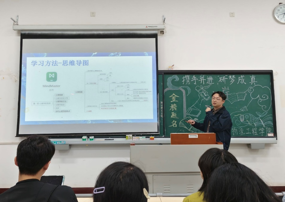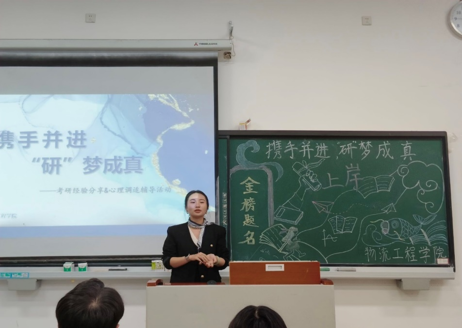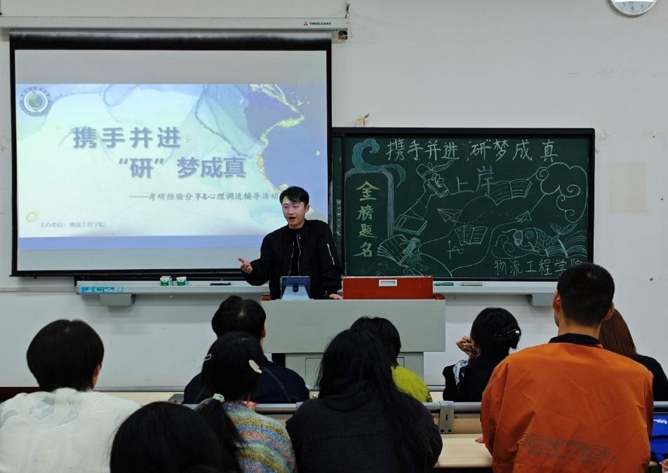 为帮助同学们明确考研方向,合理规划复习进程,缓解备考压力,11月13日,物流工程学院“携手并进,‘研’成真”考研经验分享与心理调适辅导活动在教学楼1321教室顺利举办。21级毕业班辅导员代表何柳漪,专职辅导员罗贤、龚越,心理老师尹浩臣以及21级学生代表参加。
