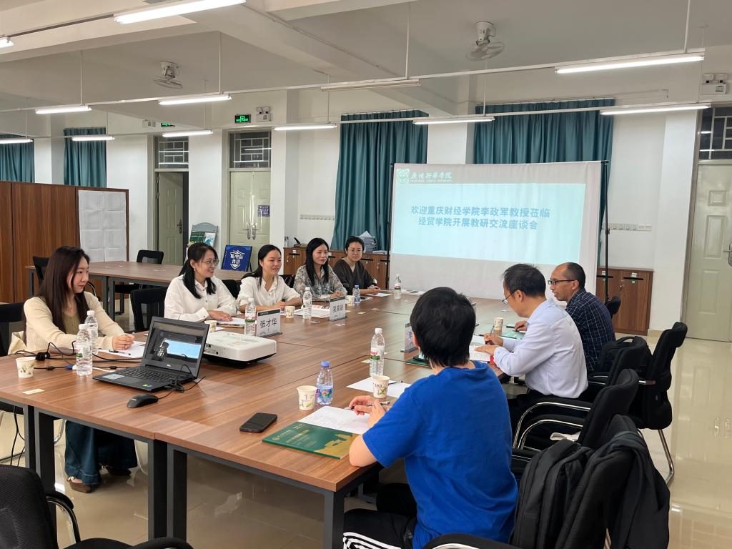 会议结束后,李政军教授和伍度志教授先后走访了东莞城市学院商学院、广州新华学院经济与贸易学院,分别与这两个学院的领导和骨干教师一起,就数字经济专业人才培养、课程设置、西方经济学课程建设、课程思政等话题进行了交流学习。