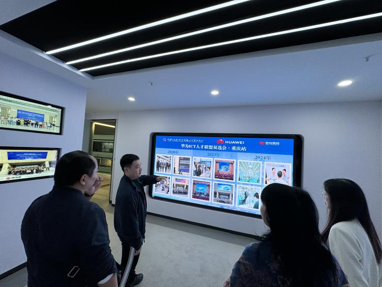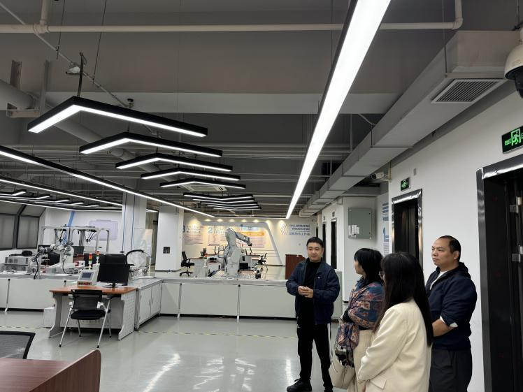 李阳经理首先陪同学院一行,参观了重庆实训中心的智能制造实训中心、工业视觉实训室等培训中心的整体布局和操作流程,并详细介绍培训中心的工作环境、技术领域和岗位需求等方面信息。