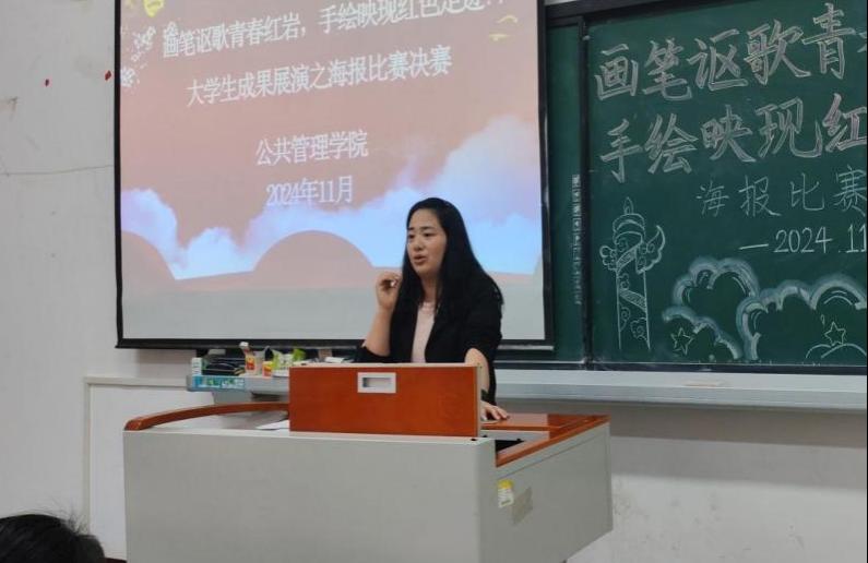 为深入学习党的二十届三中全会精神,传承与弘扬红岩精神,推动我校思想政治教育创新,11月14日中午,由马克思学院主办、公共管理学院承办的第十二届“大思政课”铸魂育人活动之“画笔讴歌青春红岩,手绘映现红色足迹”的大学生成果展演海报比赛决赛在教学楼1308教室举行。甘雪梅老师、刘璐静老师、阳圆老师担任本次比赛评委。