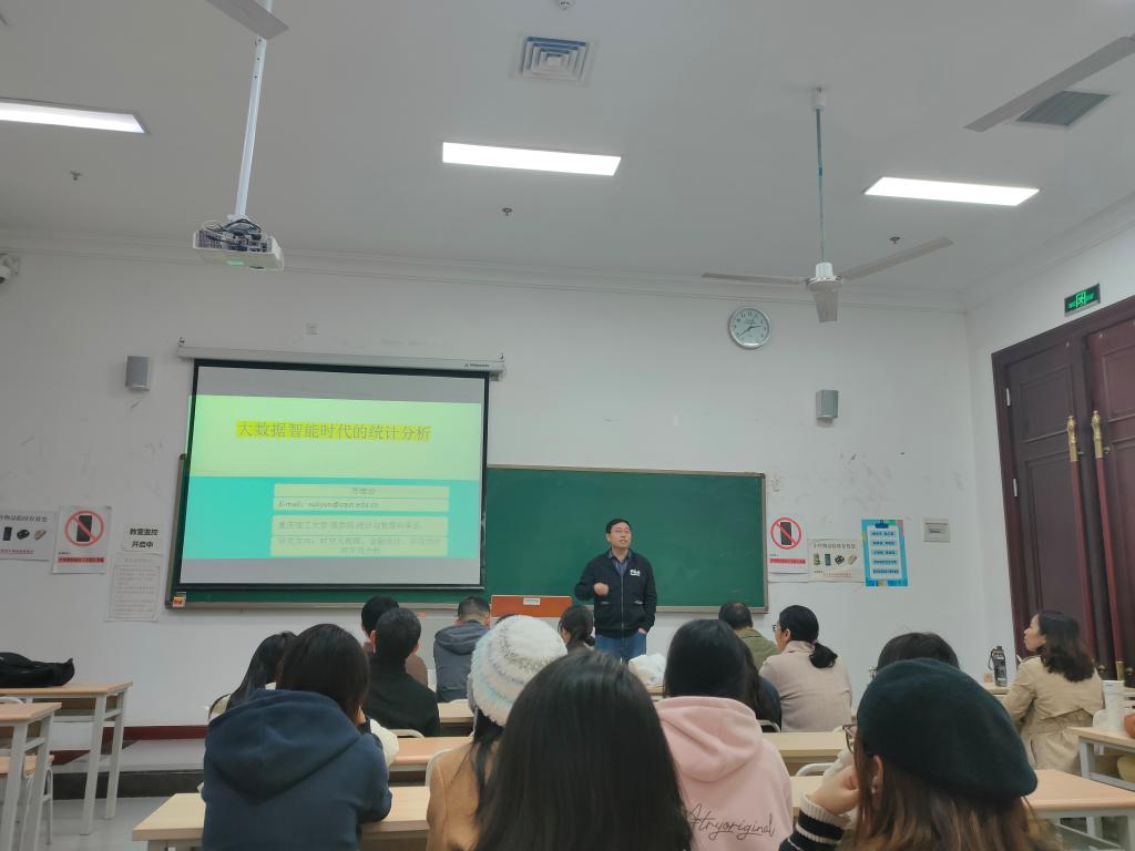 第一阶段,我校经济学院院长李政军教授对重庆理工大学苏理云教授一行的到来表示热烈欢迎。在教学楼1504教室的考研宣讲中,苏理云教授向与会师生详细介绍了重庆理工大学理学院的学科设置、专业建设及课程体系框架等情况。随后,他通过分析近年来的招生分数线、考试科目、读研政策以及毕业去向,让参会学生对考研升学有了清晰的认识。同时,他还详细解读当前的招生政策,并对同学们关心的问题进行回应,为有意报考重庆理工大学应用统计专业硕士的同学们提供了宝贵的参考信息。