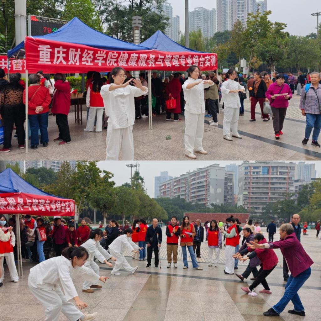 活动伊始,健管专业同学纷纷化身健康小老师,不仅热情地向居民们发放精心制作的中医药知识手册,并围绕日常生活中常见的健康问题,深入浅出地讲解中医药的应对方法。从如何通过食疗调理身体,到不同季节的养生要点,同学们用通俗易懂的语言将专业知识传递给每一位居民,现场气氛热烈,大家纷纷就自己关心的健康问题向同学们咨询,而同学们专业又耐心的解答赢得了居民们的称赞。活动中,同学们带领居民们学习八段锦和五禽戏这两种经典的健身气功。居民们纷纷跟着学习,一招一式有模有样,居民们在舒缓的音乐中,认真地学习着这些古老的养生功法,感受着身心的愉悦和放松,感受着传统健身功法的魅力。