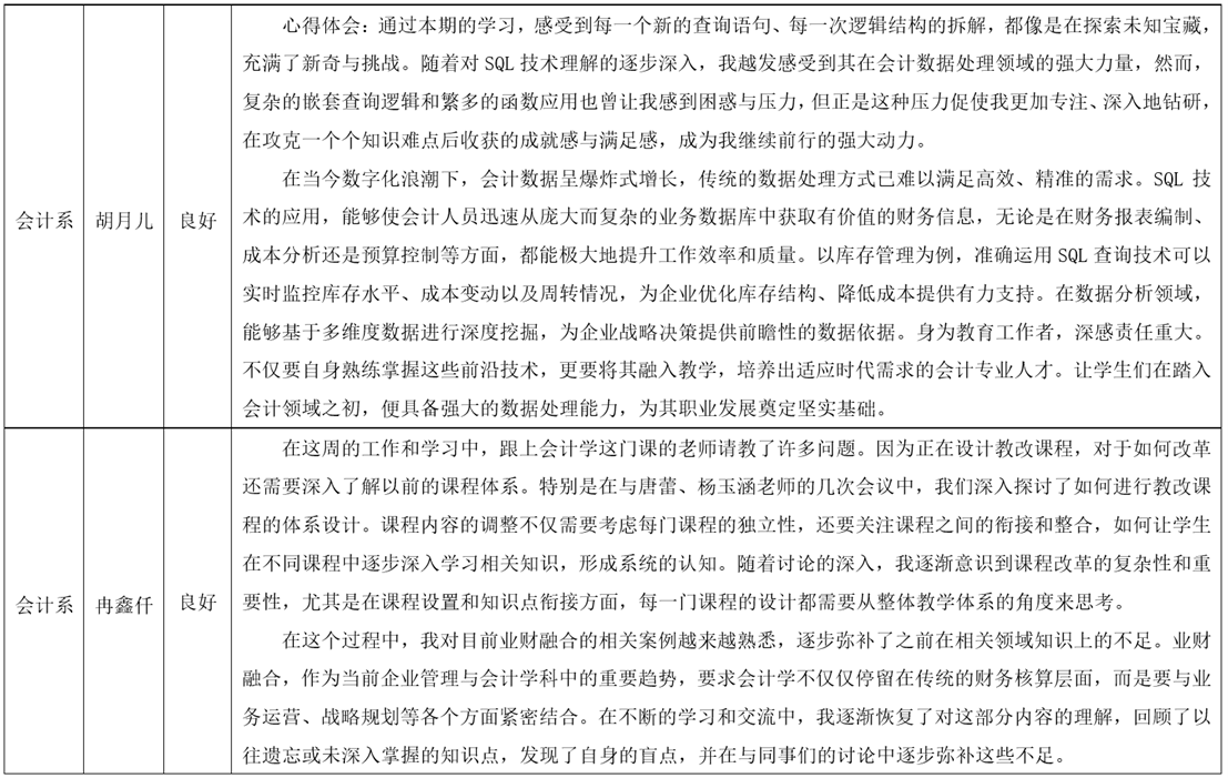 老师们纷纷表示,计划在课下多加练习和运用,通过实际操作来巩固所学知识,并尝试将所学的数据处理技能融入到教学和研究中,以更好地服务于会计教育和实际工作。