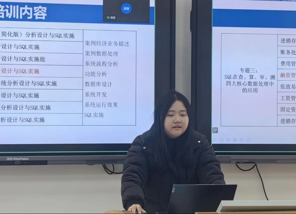 本次课程由杨玉涵老师和唐蕾老师联合讲解,聚焦于费用管理系统与融资管理系统的分析设计与数据库实现,通过系统功能的详细拆解与数据库操作案例,为与会师生展示了如何借助信息技术提升财务管理效率。