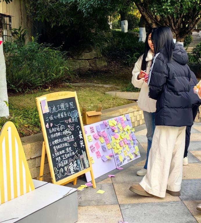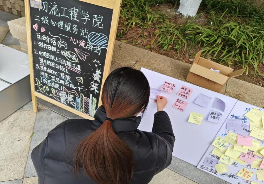 为缓解学生期末考试压力,增强学生面对挑战的信心,12月20日,我校物流工程学院二级服务站“心流驿站”在操场旁的林荫步道举办了一场别开生面的“期末周得偿所愿”活动。