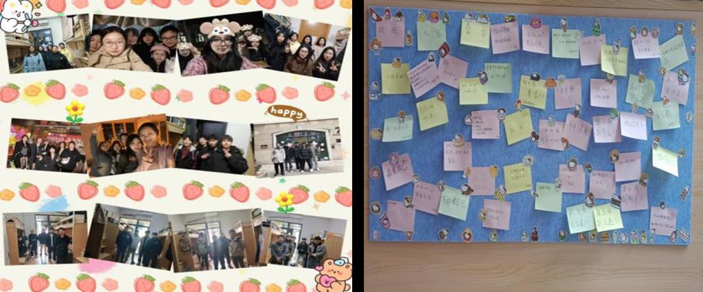 除了温馨的装饰,学院还特别策划了两项互动活动,让同学们在返校的第一时间就能参与到宿舍社区活动中。一面“心愿墙”,供同学们写下自己对新学期的美好祝愿和目标。“寝室合照投稿”活动记录了自己与室友们的美好时光。