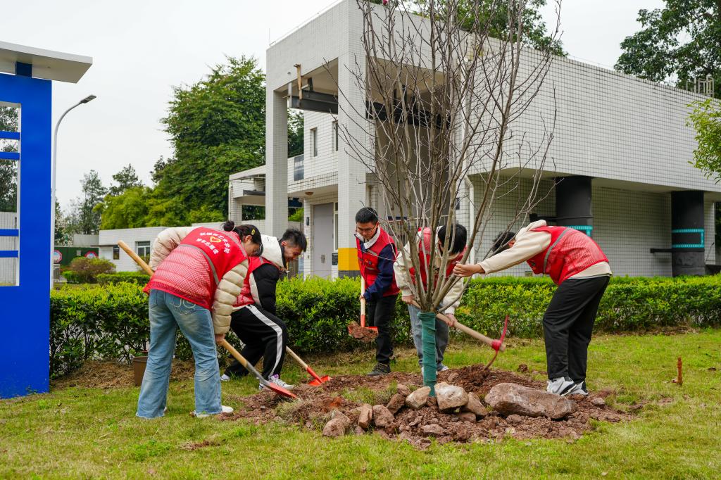 活动现场,30余名师生与企业青年骨干组成联合行动队,在专业技术指导下完成整地挖坑、扶苗培土、灌溉养护等全流程作业,累计栽种玉兰花、红枫等乡土树种20余株。