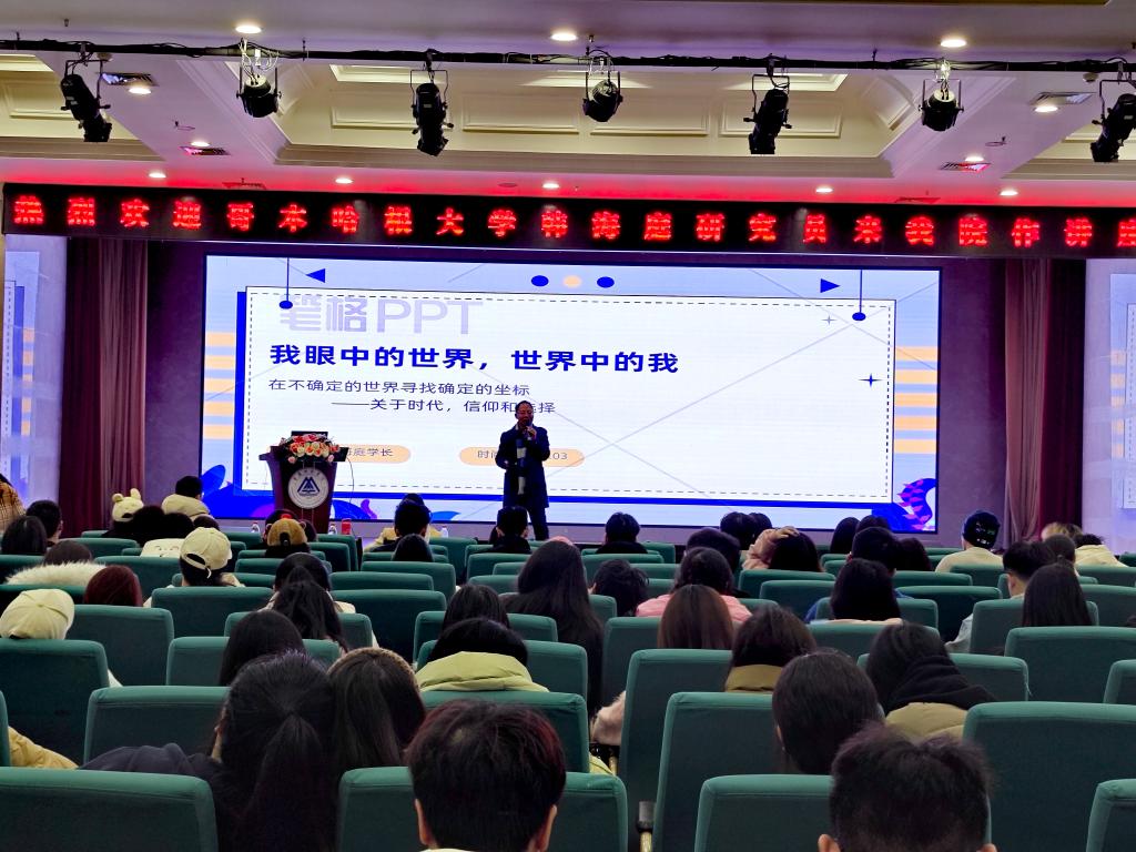 第二阶段,韩海庭研究员以“我眼中的世界,世界中的我”为主题,结合当下社会热点与实际案例,勉励同学们要深入到产业实践和企业实习中去,逐步熟悉行业产业,了解企业运行规律和特征,倒逼能力素养的提高。此外,他还分享自己在课程学习、学术研究和行业实践中的趣事,引导同学们加强不同时期、不同阶段和不同环节的学业思考和职业规划。面对同学们的提问,他都耐心细致回应,现场掌声不断。