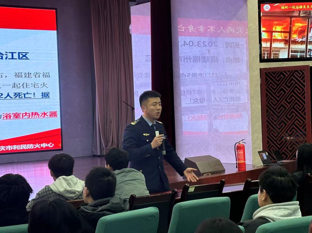 理论结合案例,筑牢安全意识。张教官结合近年高校典型火灾案例,通过生动形象的讲解和图文并茂的展示,深入浅出地阐释了火灾的严重危害、预防措施以及火场逃生自救的宝贵技巧。并重点剖析了宿舍违规电器使用、实验室操作不当隐患等校园常见火灾诱因。围绕“预防、逃生、灭火”三大主题,系统讲解了火灾预防措施、初期火情处置方法及火场逃生技巧,并现场演示了灭火器、防烟面罩等消防器材的正确使用方法。