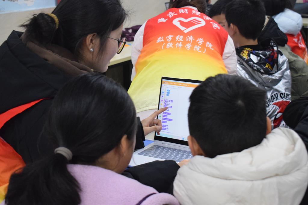 为深入贯彻国家“十四五”数字素养培育战略,赋能乡村基础教育数字化转型,助力青少年科技素养提升。3月16日,我校“软小青”社会实践团10余名志愿者走进巴南区云篆山水公租房西园社区,开展"少儿编程"志愿服务活动。本次活动依托国产编程软件Mind+平台,为20余名社区儿童打造沉浸式编程学习体验,帮助社区儿童开启智慧科技的大门。
