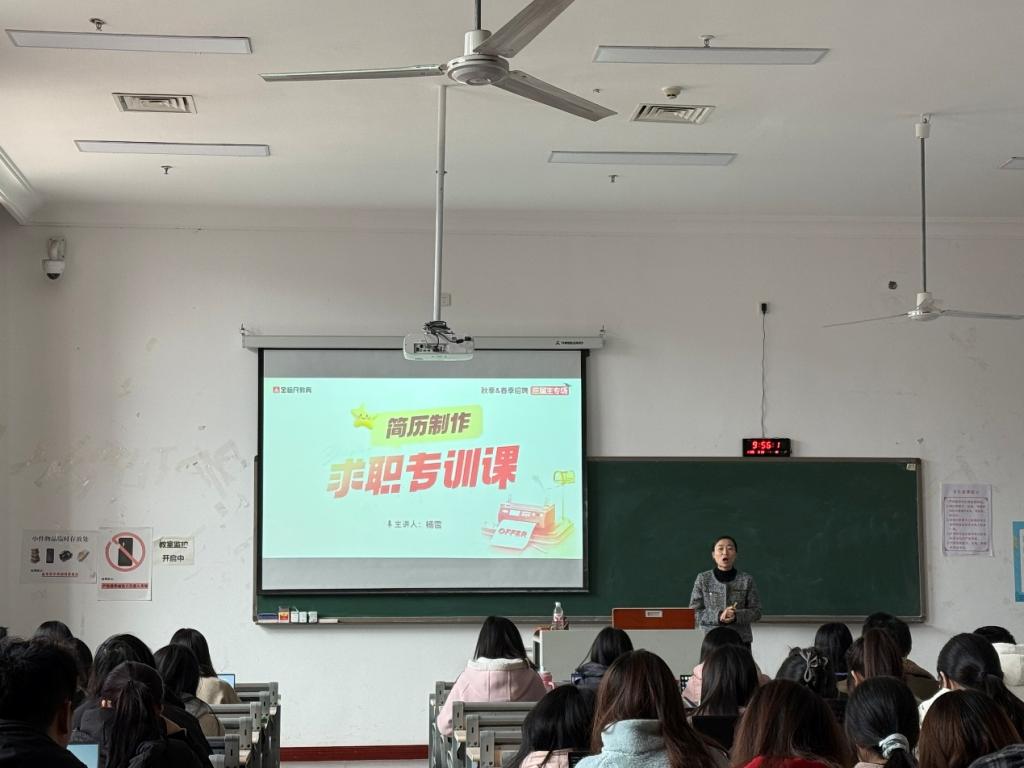 来自江苏财鑫培训有限公司的沙燕老师为税收专业以及ACCA方向班开展简历指导。她指出,进入名企的简历必备要素就是专业能力加上综合能力。她建议同学们立足当下,规划未来,需要具备更强的职业规划意识和适应能力。