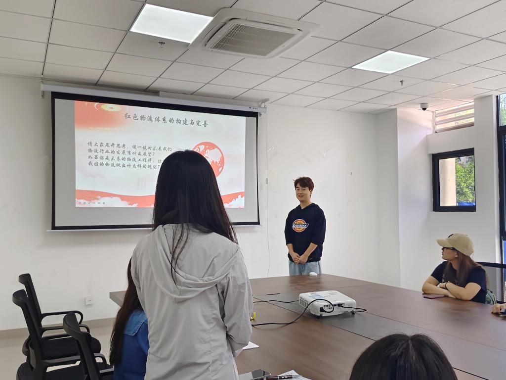 4月16日,活动拉开帷幕,覆盖学生党支部全体成员。由学生党员代表领学分享,带领全体成员重温红色物流历史发展脉络,聚焦中欧班列“东通道”扩能工程等时政热点,深度剖析党建引领下的物流行业发展趋势。通过分享交流,同学们意识到红色物流史不仅是行业发展的缩影,更是共产党人‘服务为民’初心的生动实践。