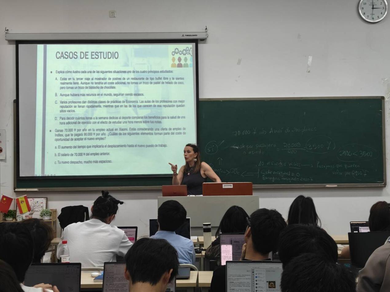 为深化中外合作办学联合培养,4月14日至4月24日,国际商学院2023级工业工程专业学生迎来由西班牙拉科鲁尼亚大学(University of ACoruña)教师玛丽亚・索尼娅(María Sonia)和助教玛塔・蒙德斯(Marta Méndez)主讲的《工程经济学》课程,该课程为工业工程专业(中外合作办学)的专业核心课程之一。