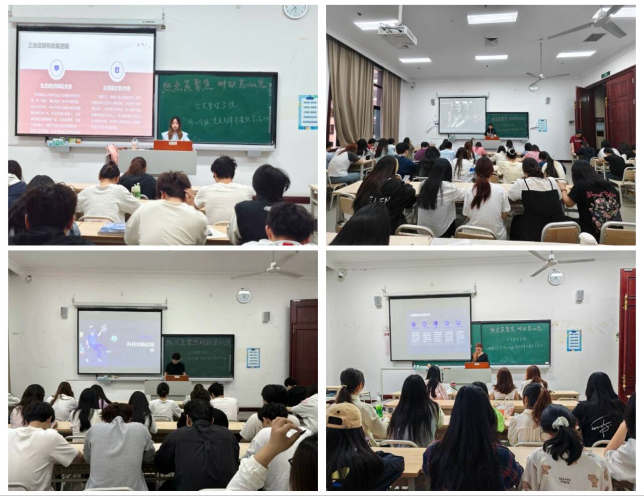 “5分钟观点碰撞”环节将现场氛围推向高潮。同学们围绕热点话题和背景分析,结合自身的专业知识、生活体验和价值观念,展开热烈的讨论与交流。有的同学从健康服务与管理专业视角,探讨时政热点对基层健康服务体系的启示;有的同学结合青年使命,分享如何在时代浪潮中找准自身定位;还有的同学从国际比较的角度,分析中国方案的独特优势。思想的火花在教室中不断碰撞,不同的观点相互交织、相互启发,形成了一幅充满活力的“时政思辨图景”。在这一过程中,同学们不仅锻炼了语言表达和逻辑思维能力,更在交流中深化了对时政问题的认识,培养了独立思考和批判性思维的习惯。