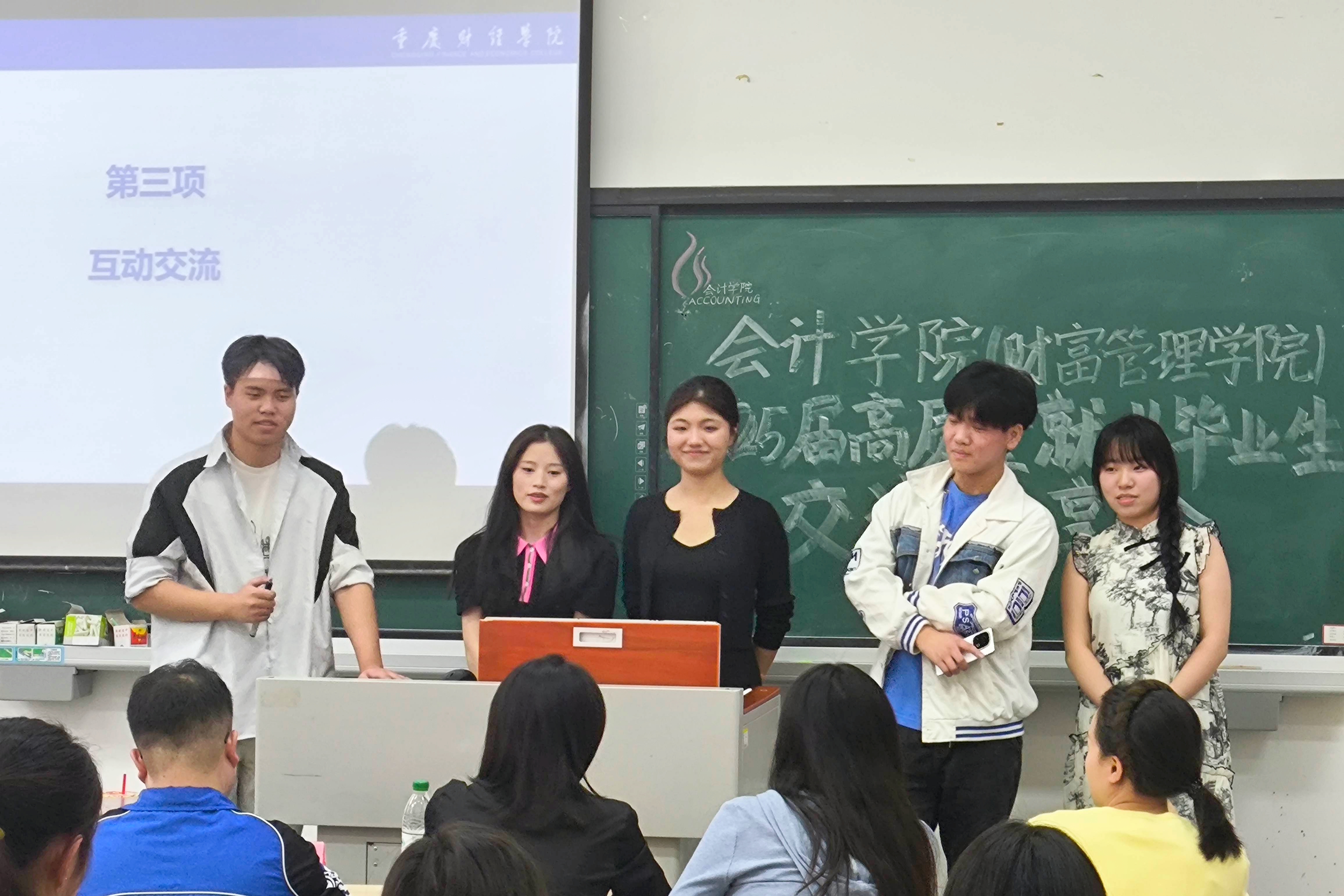 学院聚焦学生升学、就业需求,构建全周期支持体系。4月,“一‘研’为定”2026届考研班开班仪式暨动员交流会举行,学院党总支书记作动员讲话,强调“考研是意志品质的锤炼”;4名2025届考研成功学生分享跨考、提分、心态调整经验,2026届全体学员签署《考研承诺书》。2025届德勤实训班一次性签约72人创历史新高,学生代表分享实习感悟。同时,为充分发挥优秀毕业生的榜样力量,学院举行“经验共享促就业 规划领航向未来”2025届优质就业毕业生交流分享会,6名成功考取公务员、银行和入职会计事务所的毕业生代表,结合自身求职经历分享就业经验,助力更多学子实现高质量就业。