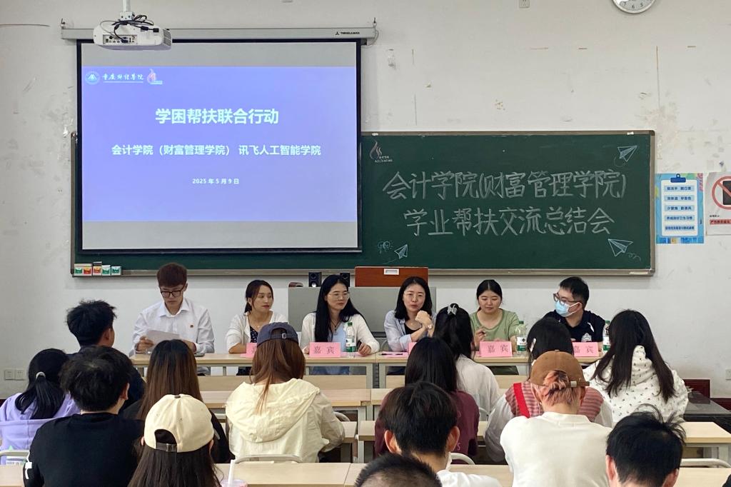 5月9日中午,我校会计学院(财富管理学院)与讯飞人工智能学院联合举办的学业帮扶期中交流总结会在教学楼1413教室举行。会议旨在全面总结两院学业帮扶工作的阶段性成果,促进师生深度交流,推动学业互助机制纵深发展。会计学院(财富管理学院)党总支书记姚转花、学团办主任谭白冰、副主任陈晨、辅导员代表吴忧、讯飞人工智能学院学风建设专员蔡霞及帮扶与被帮扶学生代表参加。