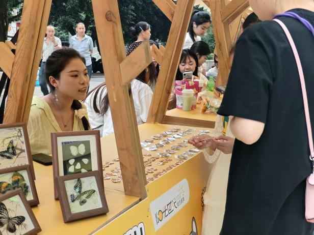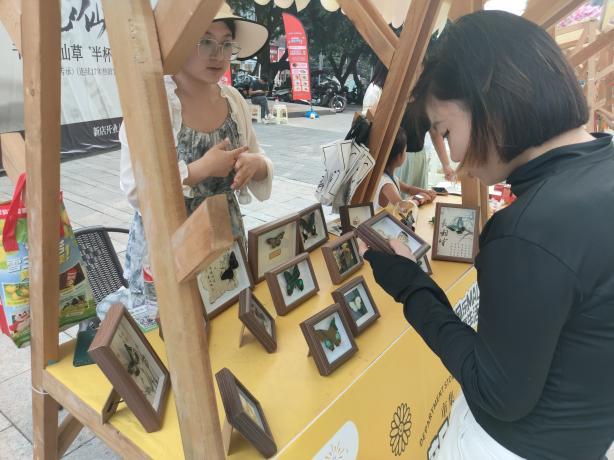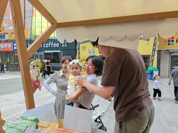 本次活动恰逢“520网络情人节”,集市巧妙融合节日元素,打造沉浸式创业场景。现场摊位品类丰富多元,既有手工首饰、定制鲜花、创意手作等浪漫主题商品,也有文创书签、非遗剪纸、地方特产等特色品类,吸引众多市民驻足选购。