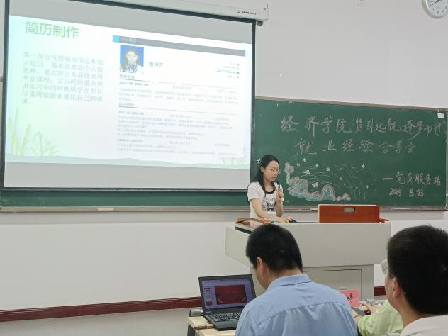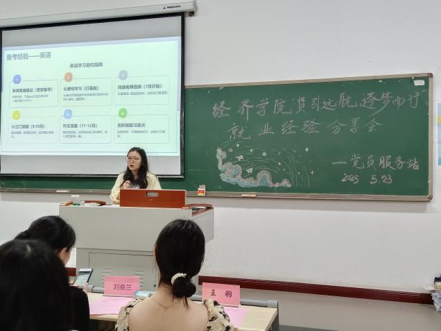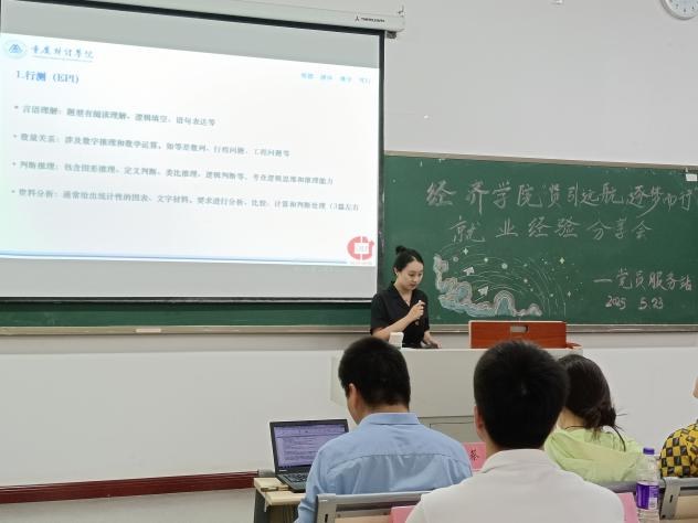 为助力同学们精准锚定职业方向,明晰多元就业路径,提升就业核心竞争力。5月23日,我校经济学院党员服务站在教学楼1506教室举办了“贤引远航,逐梦而行”就业经验分享会。经济学院党总支书记刘莉、副院长刘春兰等出席,中公教育省级校长蒋余胜以及考研、考公、企业就业等领域成功上岸的学院学长学姐受邀做就业经验分享。