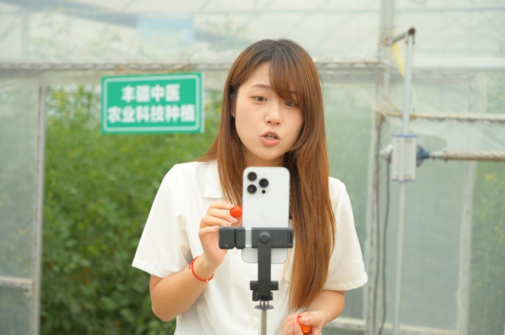 在详细了解当地农产品情况后,直播团队选择当地特色番茄进行直播,在大棚前,主播在直播间介绍中坝岛纯天然、无农药的优质番茄,搭配助播实时展示番茄的诱人色泽与鲜嫩果肉,引发直播间观众热烈互动,也让屏幕前的网友对中坝岛有了更全面的认识。